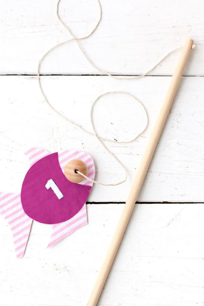 Это можно сделать при помощи клеевого пистолета или любого качественного прочного клея. Я сделала две удочки, для того чтобы иметь возможность играть с ребенком. Это будут замечательные соревнования.