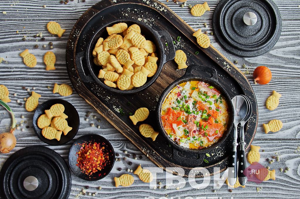 - В кипящую воду добавить картофель и варить 20 минут, закинуть рыбу, сливку и оставить вариться – 10 минут.
