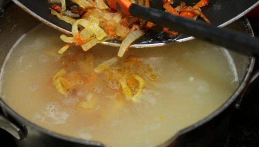 - Количество воды необходимо обдумать в самом начале приготовления, поскольку ее долив во время процесса нежелателен, как и добавление масла в бульон;