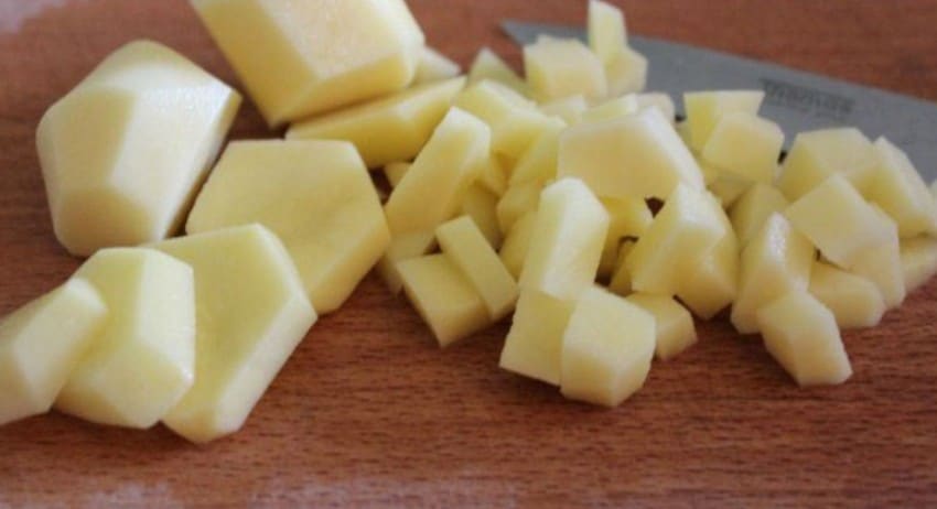- нарежьте филе на небольшие квадратики, примерно по 4 сантиметра;