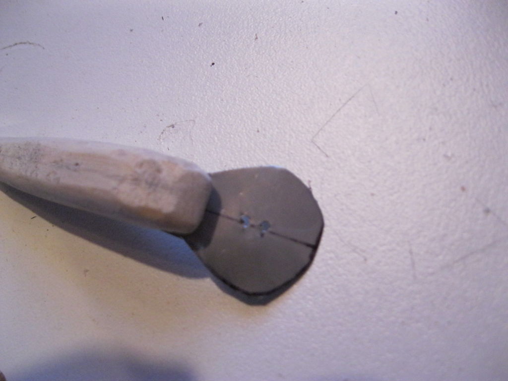 - По центральной оси проделайте сквозное отверстие. Это можно сделать шилом.