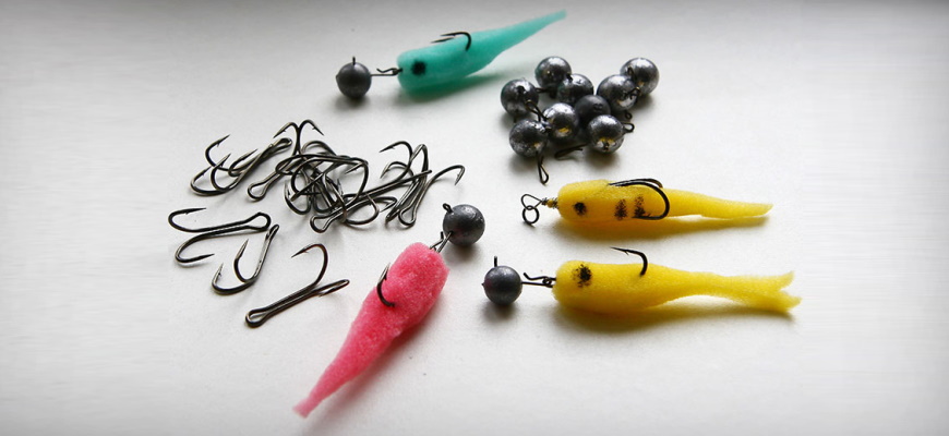 - При желании окрасьте поролоновую рыбку. В последнюю очередь навешивается тройник или другие крючки.