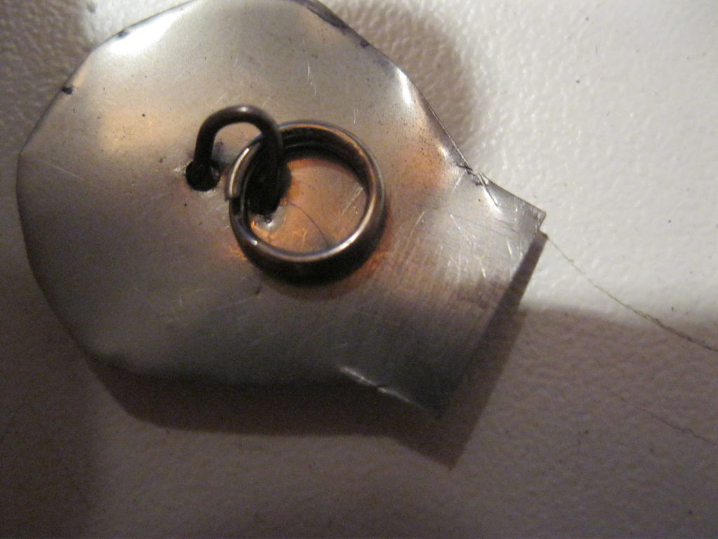 - Следующий этап заключается в том, что к широкой стороне изделия требуется припаять крюк, а к другому концу изделия нужно прикрепить кольцо.