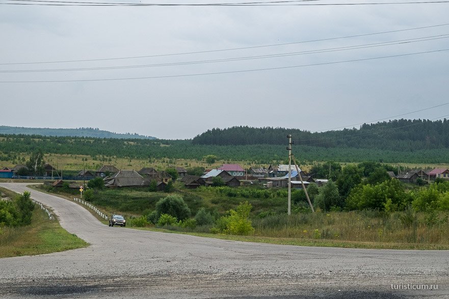 Но дорога идет чуть в объезд. Поэтому на следующем перекрестке поворочаем налево, чуть проехав – направо, и по поднимающейся серпом на холм асфальтовой дороге выезжаем из села.