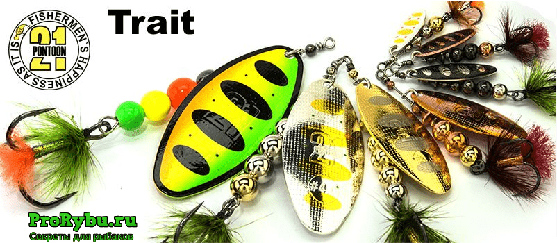 Вертушка Pontoon 21 Trait была проверена на реке и полностью оправдала доверие. Конструкция лепестка и сердечника приманка отлично подходит для ловли на течении. Сравнительно маленькие размеры вертушки Pontoon 21 Trait соблазняют не только окуня, язя и голавля, а также и щуку. Лепесток отклонен от оси вращения не более чем на 30 градусов, это дает возможность несложного управления блесной на течении и в стоячей воде.