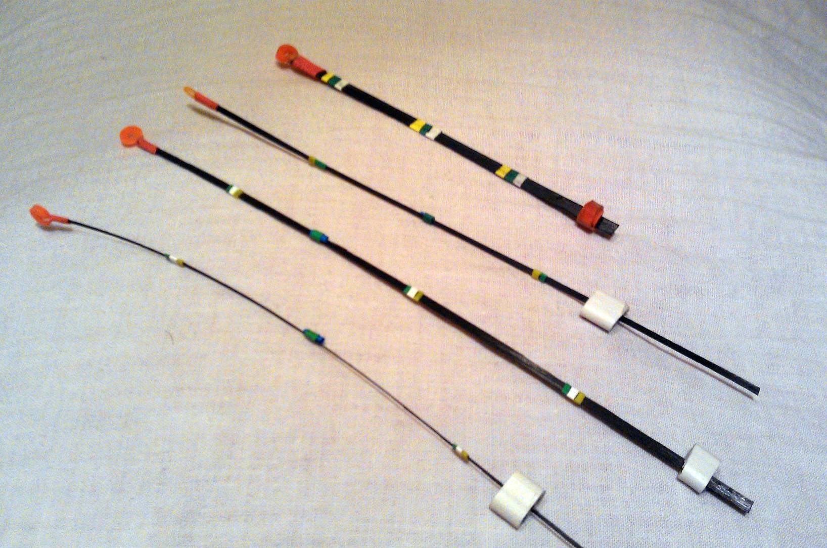 Чаще всего изготавливается самостоятельно из карбоновых хлыстиков. Такой кивок обладает высокой пластичностью, морозоустойчив, но его приходится долго обрабатывать.