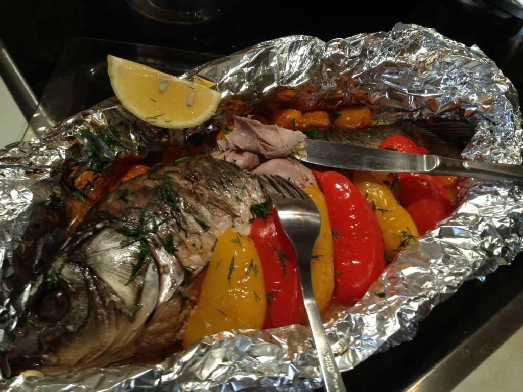 - Запекая рыбу в фольге, мясо не получится сухим. А поскольку мясо у этого представителя карповых нежное и его легко можно пересушить, то не рискуйте, а запекайте его правильно.