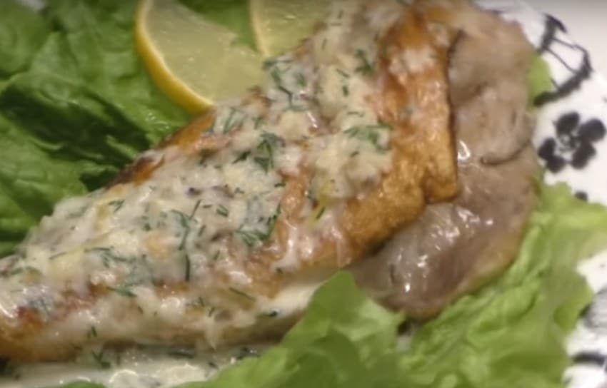 Красный морской окунь под сметанным соусом
