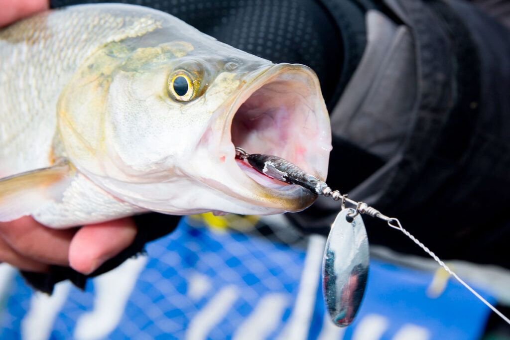 Снасть должна отличаться прочностью, но применять грубую оснастку во время процесса нельзя — хищника может насторожить размер или яркость приманки, и он откажется на нее реагировать.