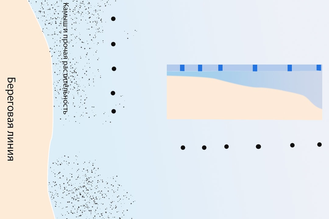 Ступеньки и перепады глубин, не более 0,5-1 метра, любые неровности дна.
