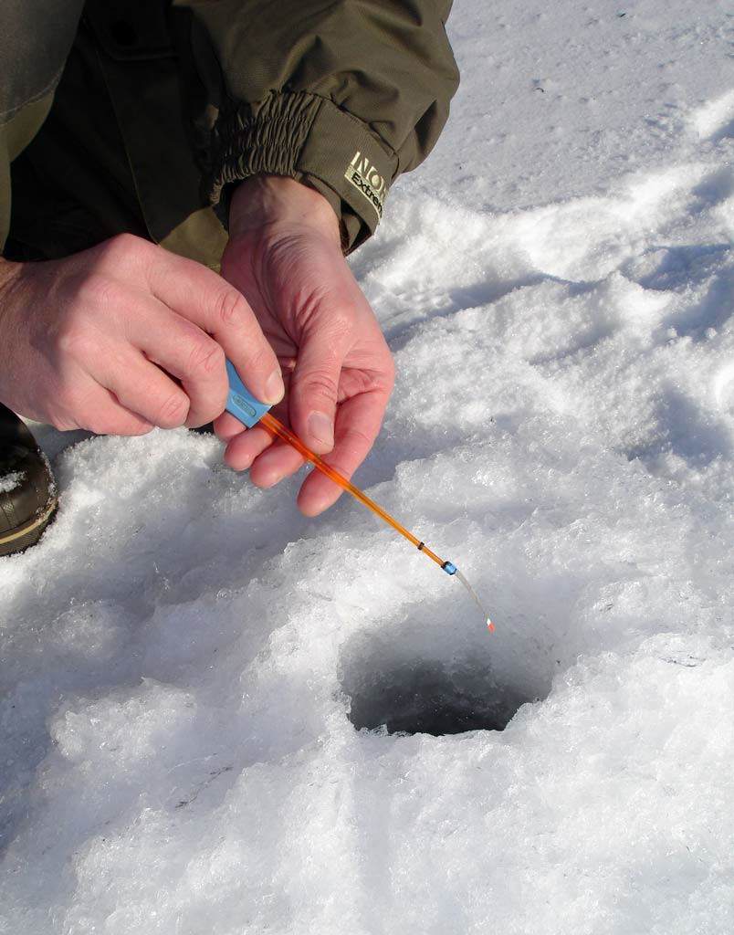 - для начала нужно просверлить лунку во льду;