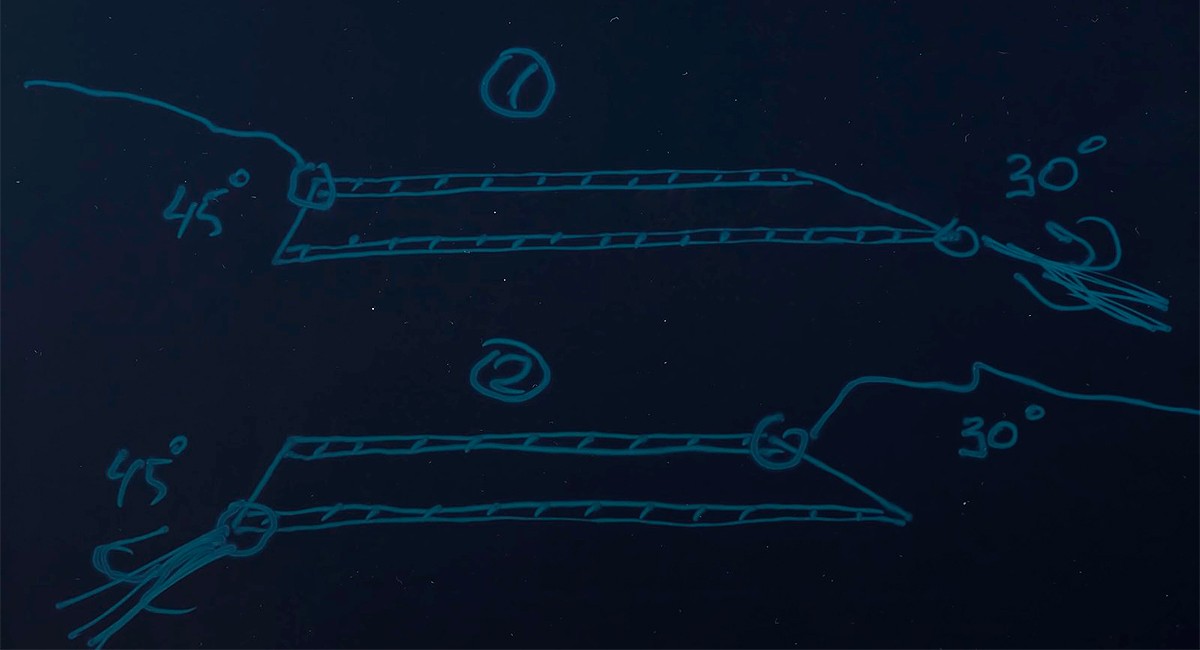 Блесны-трубки чаще всего имеют срезы под углом 30 и 45°. Крепление за леску применяется, как бы диагональное. В этом случае, блесна в воде занимает слегка наклоненное положение, и начинает более выразительно играть на подбросах.