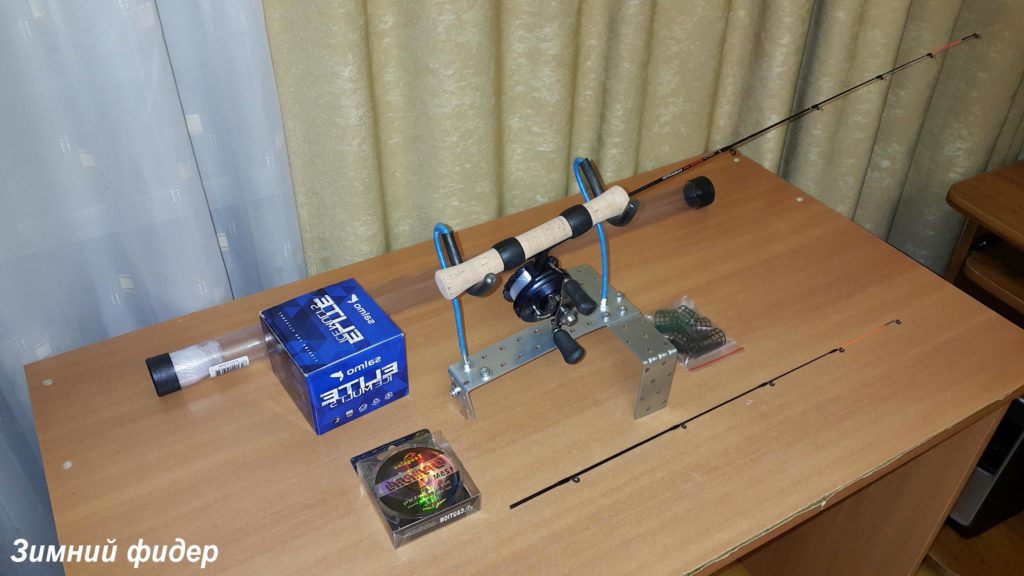 Следует изготавливать снасть, которая одинаково хороша будет и на озёрах, и на реке. Удочка большой длины, удобная летом, не применяется. Для правильного оснащения фидера больше подходят короткие зимние удочки с хлыстиками на конце.